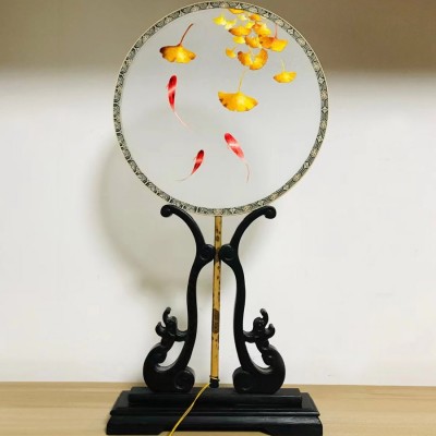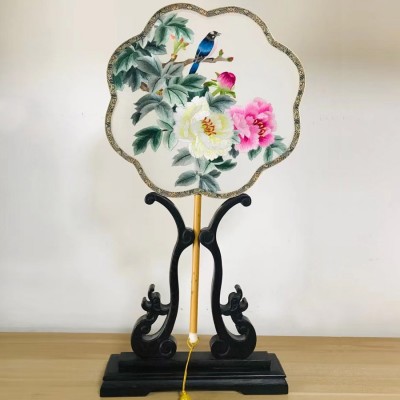 蜀绣湘妃竹花鸟扇子