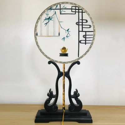 蜀绣花木静物扇子