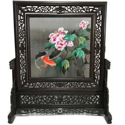 蜀绣双面牡丹三鱼